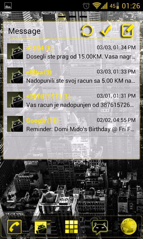 Gold is the same as in other LiquidGold Themes from Team Carbon, such as GOLauncher Ex, GoSMS Pro, and CM7 Themechooser.