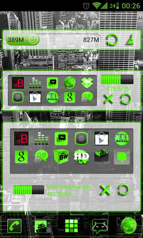 This version of GOWidget Green ICS Light Free Android App comes with one universal variant which will work on all the Android devices.