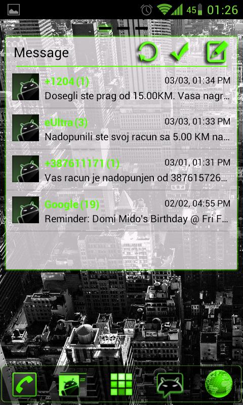 Green is the same as in other PoisonGreen Themes from Team Carbon, such as GOLauncher Ex, GoSMS Pro, and CM7 Themechooser.