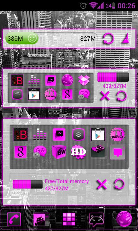 This version of GOWidget Pink ICS Light Free Android App comes with one universal variant which will work on all the Android devices.