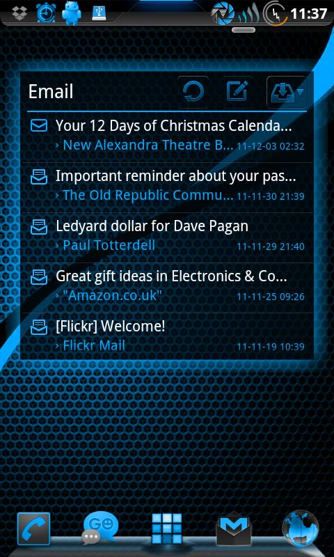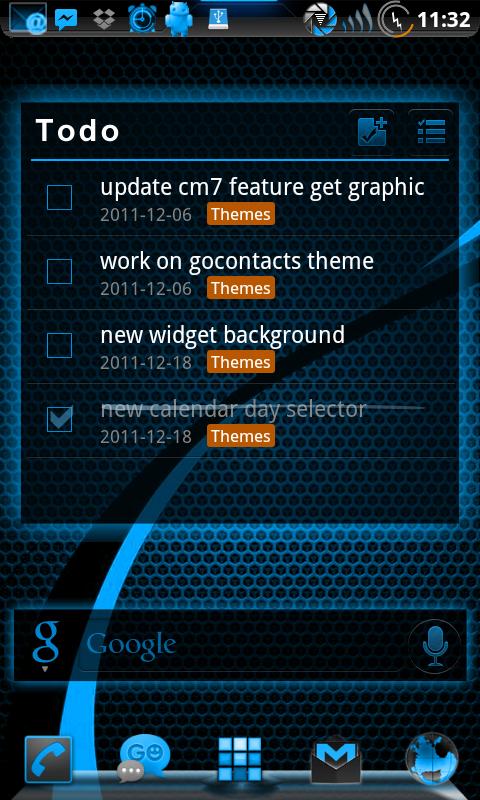This Theme matches other SteelBlue themes by TeamCarbon, such as GOLauncher Ex, GoSMS Pro, and CM7 Themechooser.