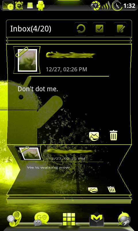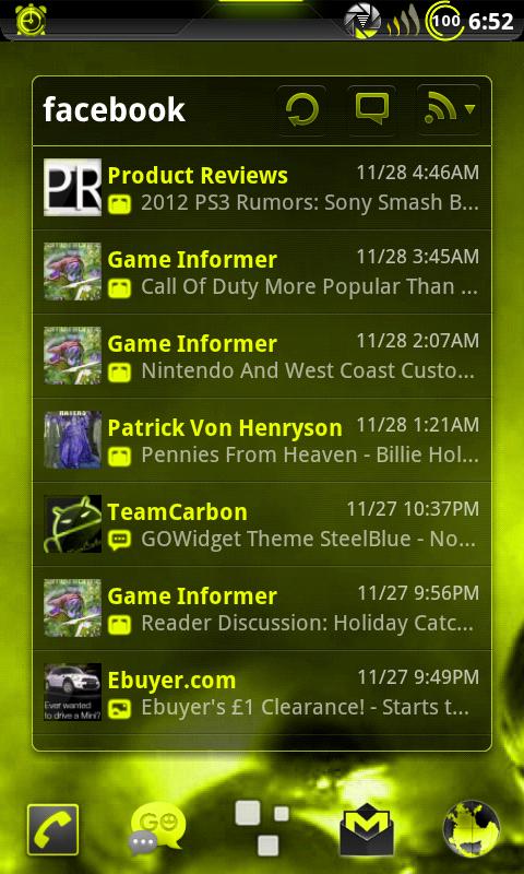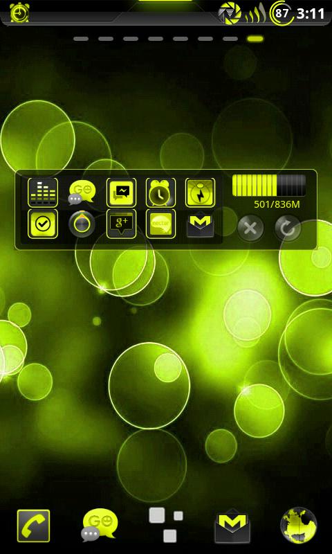 This Theme matches other SulphurYellow themes by TeamCarbon, such as GOLauncher Ex, GoSMS Pro, and CM7 Themechooser.