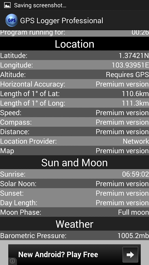 This app is very informative. There are informations on time, battery, location, sun, moon and weather. The app makes use of either your GPS or network, so please make sure you have either one. However, GPS is strongly recommended as it increase accuracy by quite a fair bit.