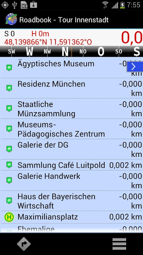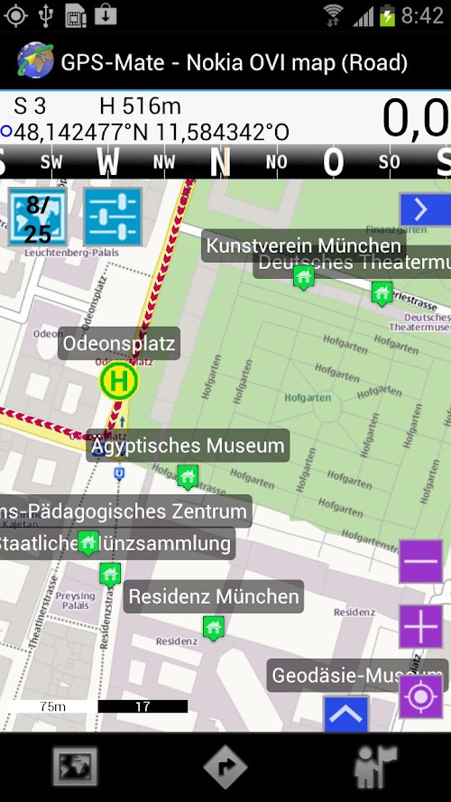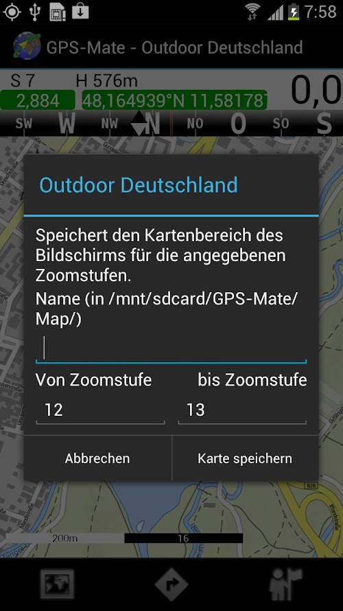 Fine GPS location: GPS-Mate shows your location in the maps using GPS.