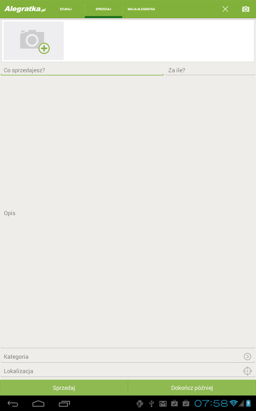 - kamery - wykorzystywana jest, gdy chcesz zrobić zdjęcie i załączyć je przy dodawaniu ogłoszenia