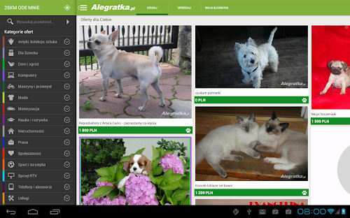 • 16 kategorii głównych i 400 podkategorii, w tym: Praca, Usługi, Motoryzacja, Moda, Nieruchomości, Zwierzęta i wiele innych.