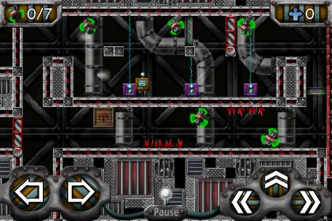 GravBot is a physics-based puzzle platformer, where you decide which way is "up" as a little robot falls and pivots through each level. Collect all the batteries to win, but watch out. A wrong move could be deadly!