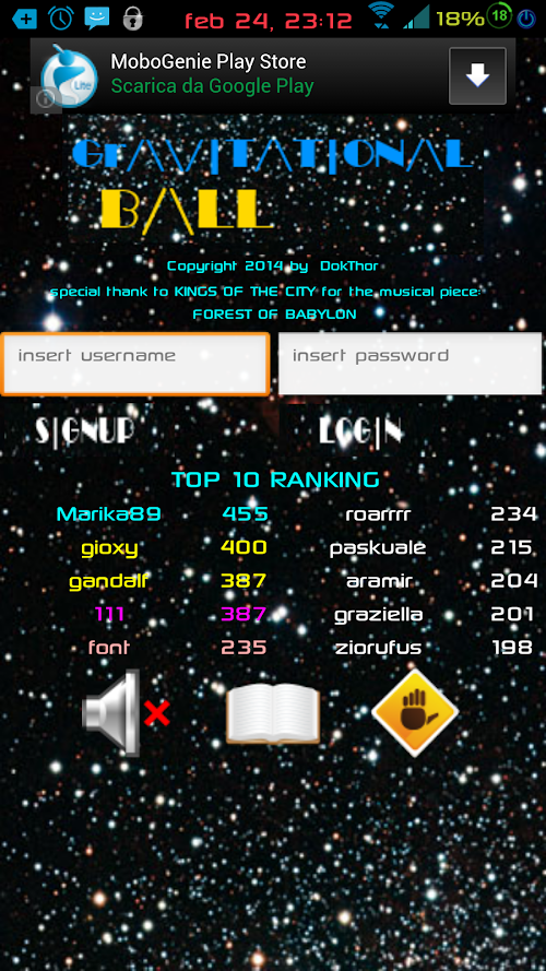 Game suitable for all ages: reflexes, ability to anticipate the bounce angles, strategy to coordinate the movements of the spacecraft with those of gravitational tank to collect bonuses while dodging the enemies, are all skills that will be put to the test by a progressively frenetic action.