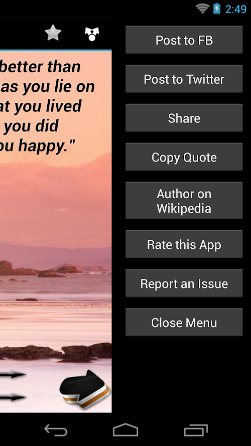 Tweet and FB post quotes directly from the App.