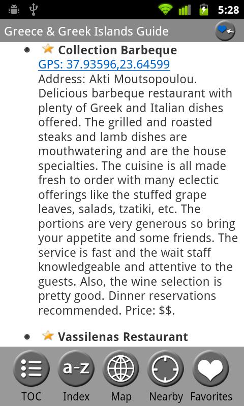 ✔ The top restaurants have been individually selected by MobileReference editors. These restaurants are marked by a star in the EAT chapter and are plotted on the GPS map.