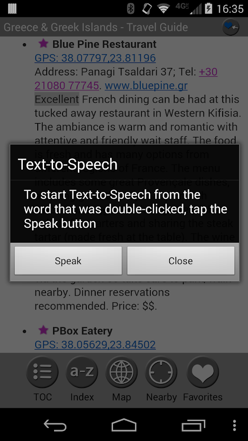 ✔ The top restaurants have been individually selected by MobileReference editors. These restaurants are marked by a star in the EAT chapter and are plotted on the GPS map.