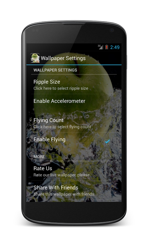 This live wallpaper will create a wave effect and flying apple.
