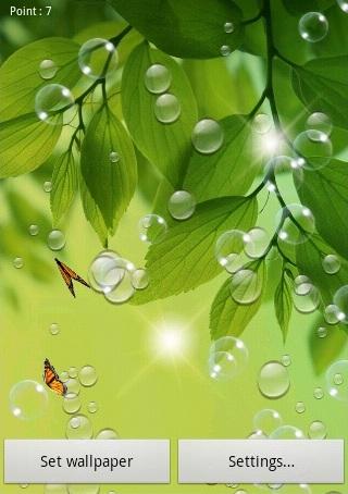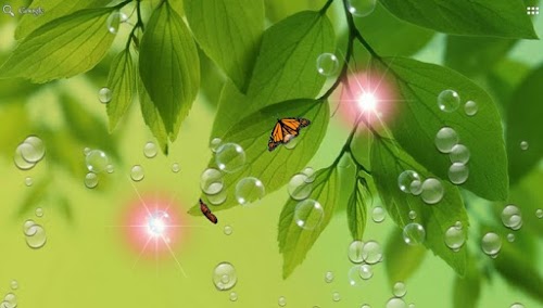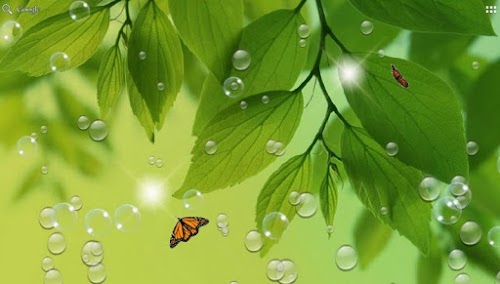 Green Leaf for Galaxy S4 Live Wallpaper Free is a vivid picture of Green Leaf with many raindrop on screen and some butterflys flying across and many bubbles which broken when you touch it .