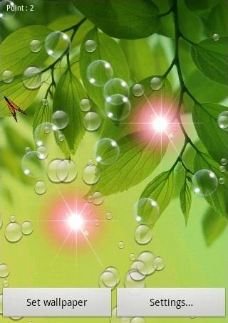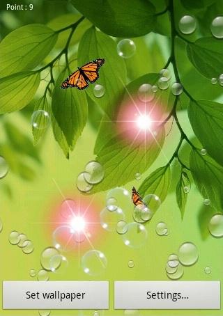 When you touch the screen there will be points of light flashed. You can also alter the impact of moving butterflies and drops of water.