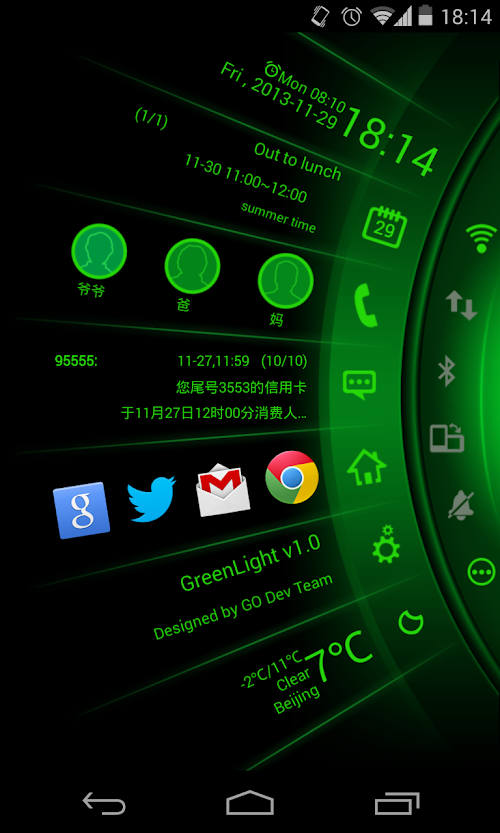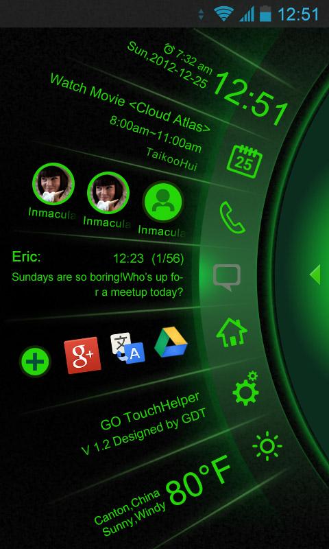 Green Light Light Toucher Theme, designed by GO Dev Team, who brings you GO Launcher Super theme.