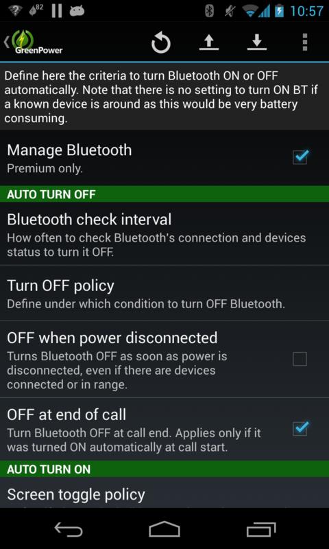 • BLUETOOTH (premium) management: Based on devices connected or in range, screen state, power etc