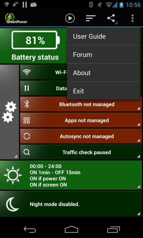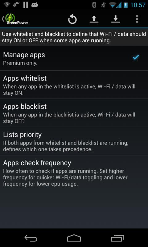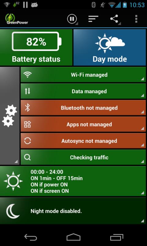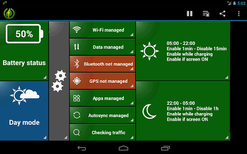 Unlike other battery savers that require regular user manual actions, GreenPower is an easy battery saver that is fully automatic: Once configured, it runs and saves your battery by itself. It does so by smartly managing Wifi, Mobile data, Bluetooth and Screen Brightness: Turning them off when you don't need them, but ensure minimum disturbance: Automatic turned ON when needed by you or by other apps (e.g retrieving mails). Easier, cleaner and faster than competitors like JuiceDefender , 2x battery saver and easy battery saver!