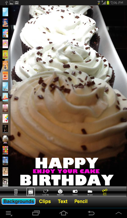 The Only Greeting Card Maker App in the Android Market. Easily Create your own exotic Greetings or choose a Ready made greeting and Share your work with friends via Facebook, Email, MMS, Google+, Twitter or any other social network, and any sharable Media.