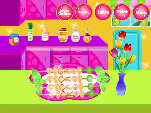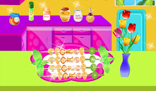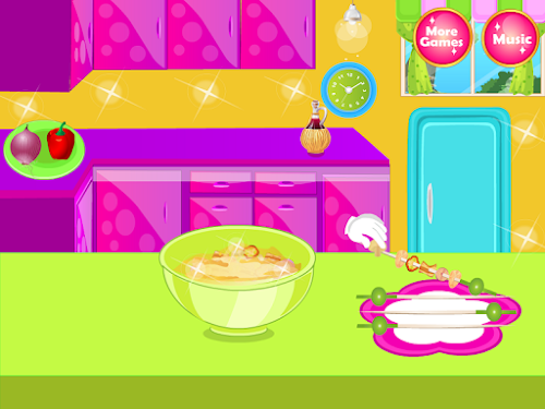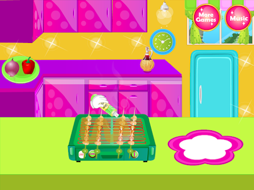 Hi, is approaching the lunchtime and we have not managed to finish all the chores. We must do cleaning, to take children from school, pay bills and to prepare a healthy and delicious lunch. Because there are many problems we need you to help us to prepare lunch. Do you help us? If you believe you are a good cook then you're our saving. Through this cooking skewers game for kids you will have the opportunity to cook for the whole family, the food must be healthy and very tasty so you have to be very careful in how you will use the ingredients. This kids cooking kebabs game is special because it will give you the opportunity to prove to your friends that you're a great friend but also a good cook.