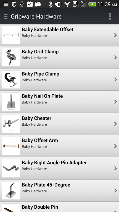 The Android Grip Application was designed for Lighting / Grip professionals in the entertainment industry. Its goal is to provide the most useful information in the Gripping / Dolly / rigging department.