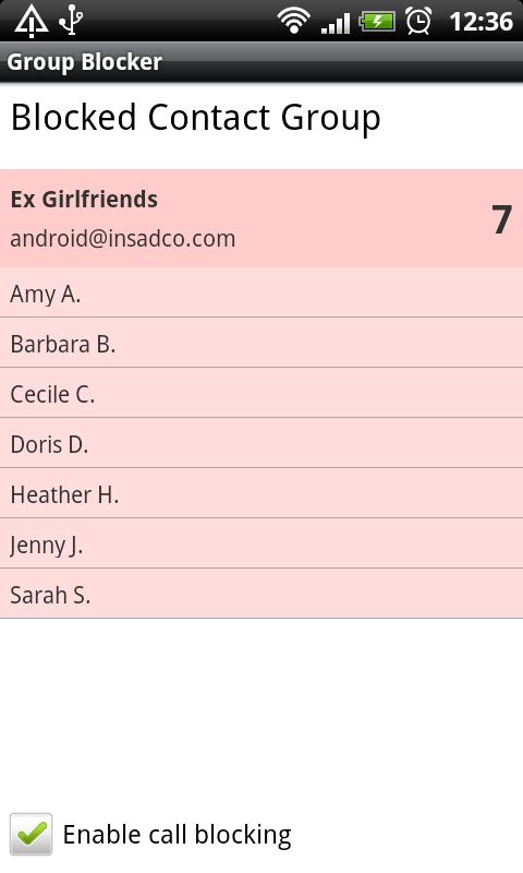 Group Blocker is a call blocker that is based on the group membership of a contact. All contacts belonging to a specified contact group are blocked. So now you can also use Google Contacts to manage your call blocking list.
