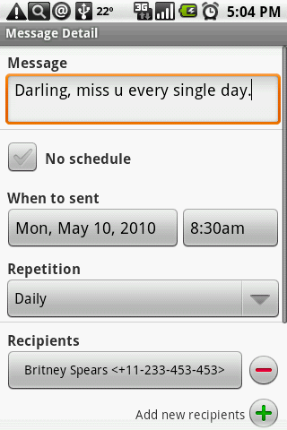 Group SMS Scheduler can help you to send SMS to multiple contacts/groups immediately or at any scheduled time.