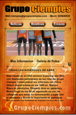 El atletismo de Zaragoza en tu dispositivo móvil, descubre las ultimas noticias del grupo ciempiés, descárgate los boletines oficiales y entérate de todos los enlaces y eventos que se van a organizar.