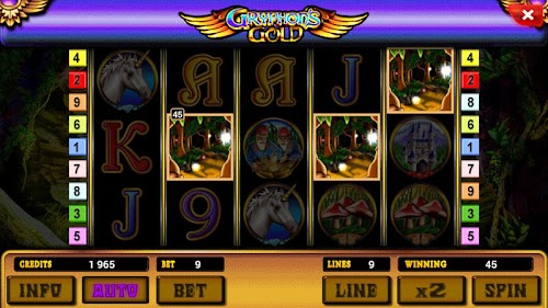 Fantasy fans dedicated! New slot machine Gryphons Gold (Golden Gryphon), for fans of all unusual, unexplained. For those who do not know, the griffin - a mythical winged creature with the head of an eagle and the body of a lion. Hell of a mix. But, despite his frightening appearance this creature was quite positive, and inexplicably enormous power. Gryphon in all legends show how the guardian of golden treasure. Moreover griffin also help you to get the gold, because he is the wild symbol. But the scatter symbol in the game is a path in the fairy forest, you can safely go to this path and get fifteen free spins. In general, all free slots Gryphons Gold, imbued with the spirit of mysticism. Gnomes, unicorns, fairy and her fairy-tale castle. All these characters come to your aid. After panning for gold griffins not a simple task, but solvable. The main thing that luck was on your side, and everything else very attached. After the payment is very, very impressive imagination. Catch five griffins, and get fabulous prize equal to the rate of H9000. Bids can be placed on the proposed line payments, which nine. And the presence of the risk game will give more color gambling slot. Himself a slot machine Golden Griffin looks bright enough that attracts gamers views. A comic animation will entertain during the preparation of any winnings. You can play with virtual money, which will provide you with a gaming machine Gryphons Gold. So lose the personal savings you will not have to. A griffin bird supportive to newcomers, and point the way to their protected gold reserves. We wish you good luck in finding and taming the griffin.