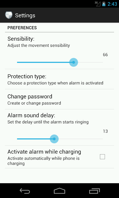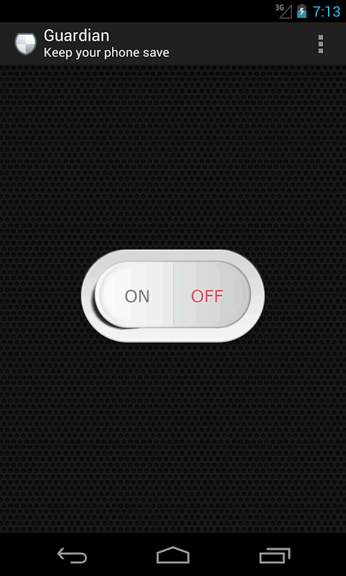 Other options are available, like activate Guardian by an NFC tag or tell the app say something for when somebody touches your phone like: "Don't eat me, I have a wife and kids! Eat them!".