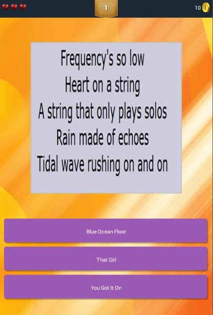 You know some of the song lyrics? Well I hope you can guess the song lyrics in lyrics from the game of guessing. Because you have to memorize the lyrics of the songs that would appear on the show this quiz! I will test it with some words of the lyrics below.