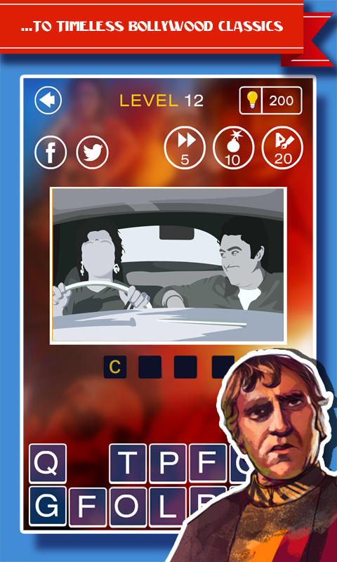 Ultimate Bollywood Game for the ultimate Hindi movies fan! Guess the Bollywood Flick brings you all your favourite Hindi movies at one place so that you can test your Bollywood knowledge from the convenience of your palm. This Bollywood quiz game is like no other. Just look at the picture and guess the name of the Hindi movie. Its simple, yet highly addictive. If you are an ardent Hindi movies fan, then this is one Bollywood game you can’t afford to miss!