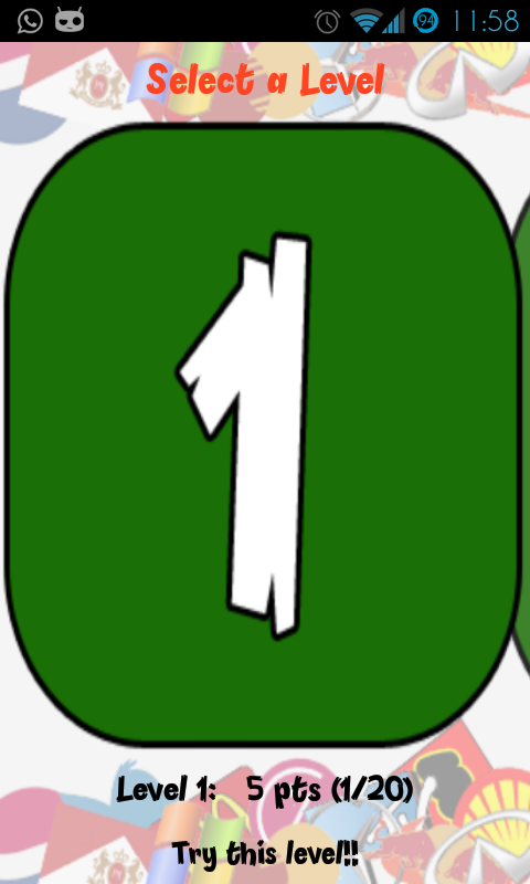 To pass a level you have to guees 15 of the 20 images of the level. You can ask for hints for helping you, each hint substracts you 5 points to your score.