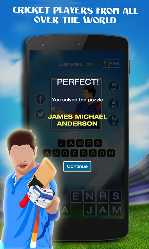 for the ultimate cricket fan! Guess the Cricket Star brings you all your favourite cricketers from around the globe so that you can test your cricketing knowledge from the convenience of your palm.