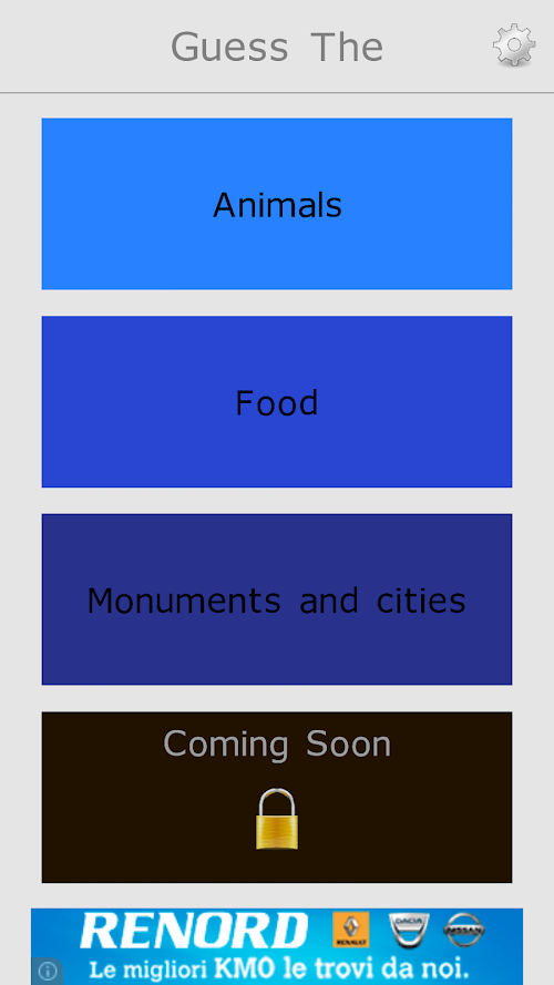 The game includes 12 levels with 380 pictures to recognize and guess ( animals, food, monuments and cities ).