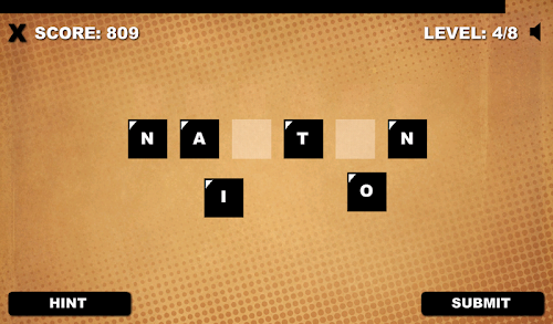 Press the HINT button if you want to see a help letter. Watch out, some letters can create more words, HINT will help you to create one of them!