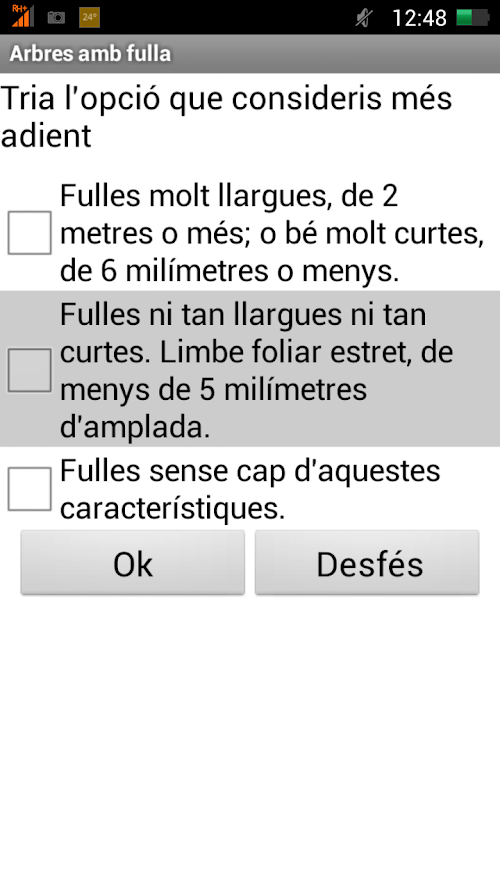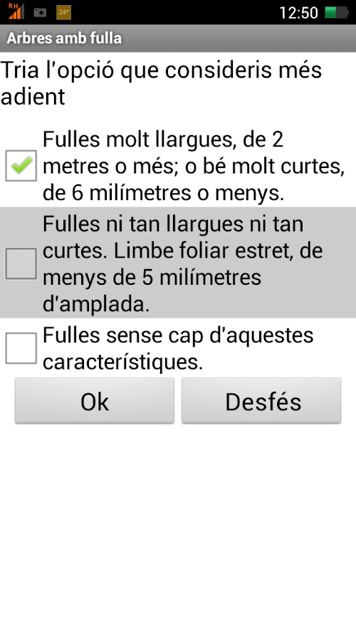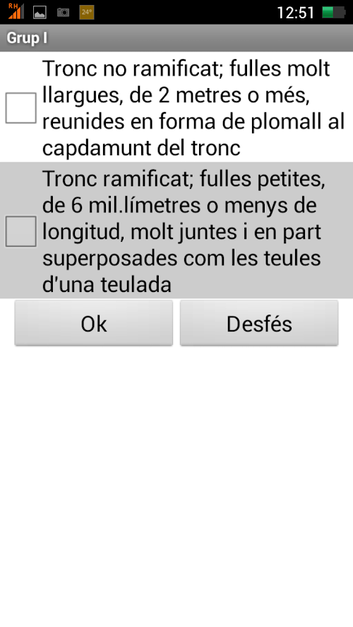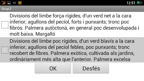 Seguint les diferents opcions s’arriba a la determinació de l’espècie. En aquest punt l’aplicació ens redirigeix a la viquipèdia, on podrem constatar que efectivament es tracta de la nostra espècie i visualitzar les seves característiques.Application used to identify trees that are found in the forests of Catalonia, Valencia and the Balearic Islands.