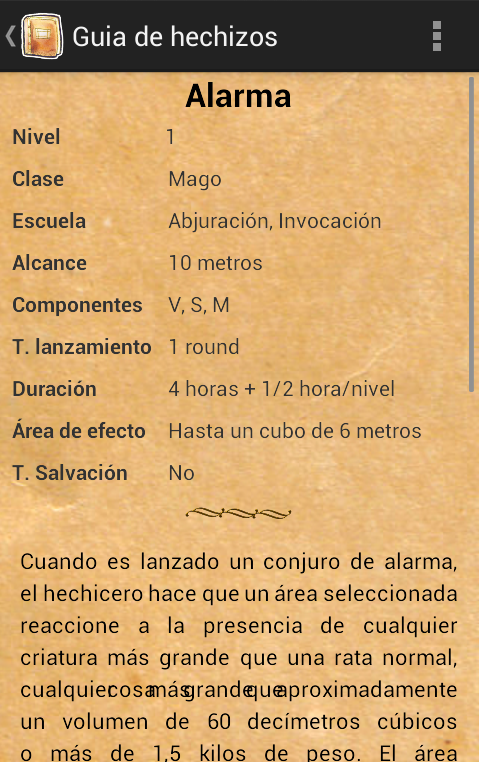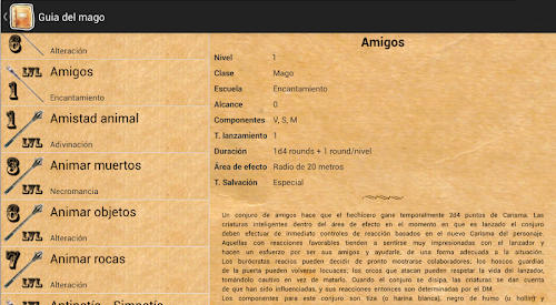 La guía de hechizos AD&D 2.0 es una aplicación de referencia para todo jugador de Avanced Dungeon & Dragón 2ª edición, ya que contiene todos los hechizos y conjuros de Mago y Clérigo de esta edición.