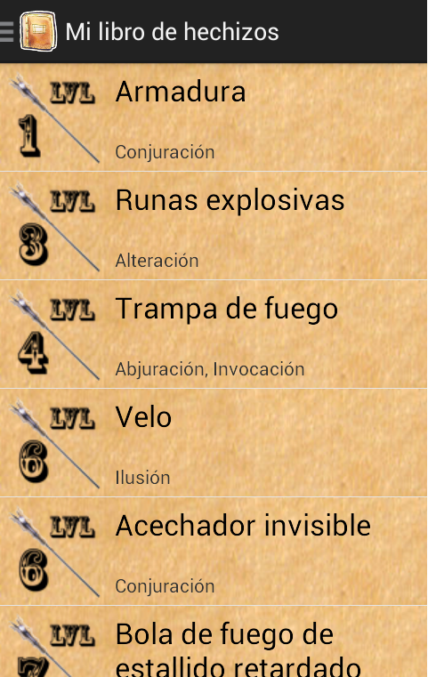 La aplicación facilita la búsqueda de hechizos por nombre, nivel o escuela, con lo que encontrar el que necesitas es una tarea sencilla.