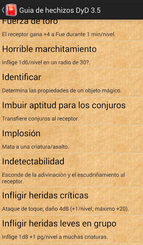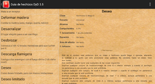 Let them manual for them !!, because with this application need not draw on it to see the details of all your arsenal of spells, as this guide spells D & D 3.5 is a reference application for any player of Dungeons & Dragons 3.5 edition, for all spells and incantations contained in this issue.
