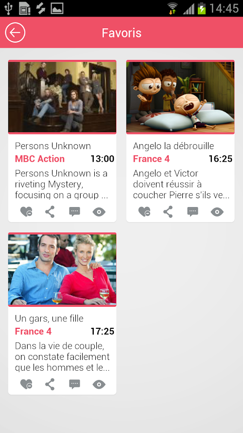 · Le détail des programmes avec possibilité de partage sur facebook, twitter, mail, sms;