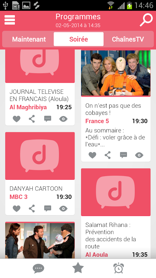 L’application propose un guide de programmes télévisés au Maroc en Europe et au monde arabe personnalisable et communautaire.