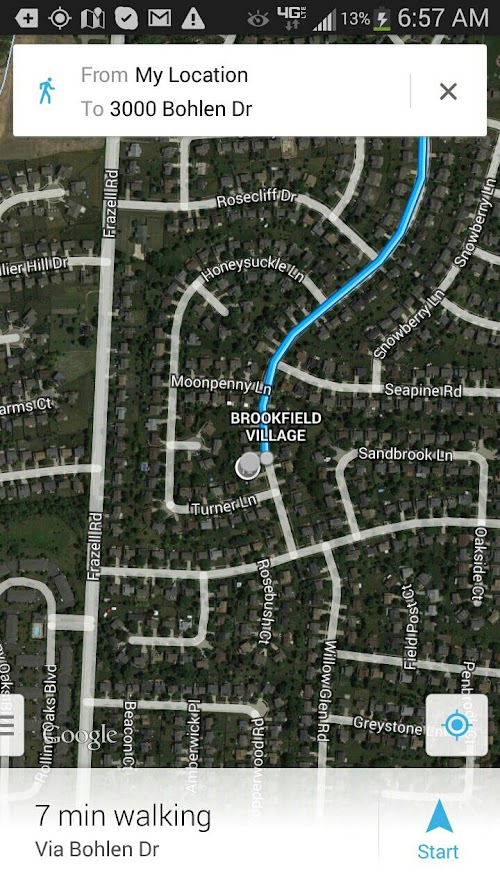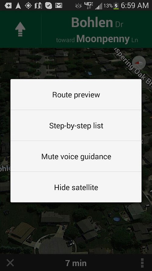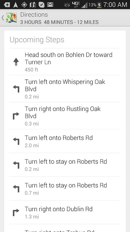2. Since we initially developed GuideDroid® in support of individuals with cognitive disabilities/low vision navigating their way around college campuses, GuideDroid® initially starts in "Walking Directions" mode. This is why you will see what appears to be very long time estimates to get to your destination as compared to driving there. To switch GuideDroid® into "Driving Directions," "Public Transportation," or "Biking" mode, please use the following instructions: