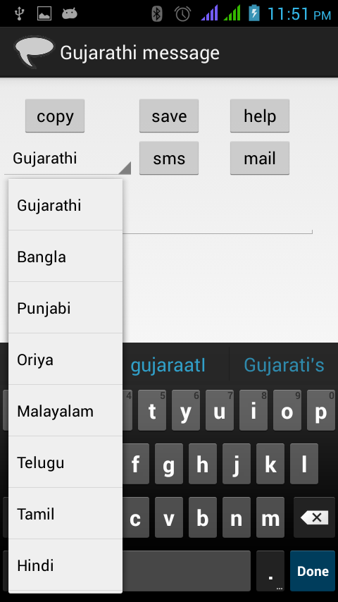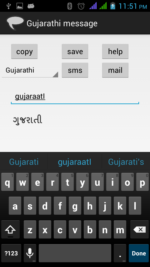This app allows to type text in gujarati and other indian languages using normal keyboard.