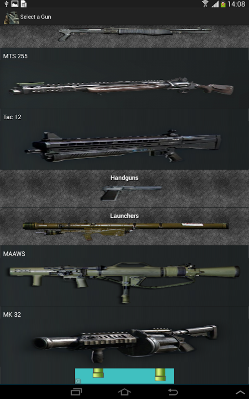 Big choice of guns! Assault Rifles, Machine Guns, Snipers, Shotguns, Handguns, Launchers... and more