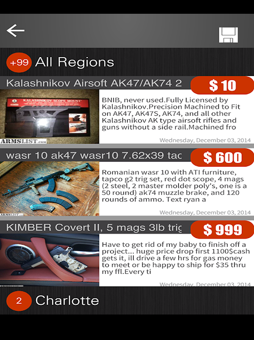 Gun Search for Armslist is the first app to give you access to the amazing Armslist classifieds website! With amazing search capabilities and quick and easy ad postings, this app is a must-have for all gun enthusiasts!