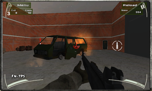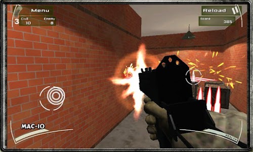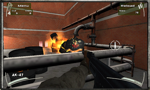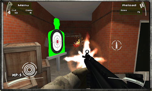 You will be a selected soldier on a special counter terrorism training. Your battlefields will be a big warehouses (storehouse) full of boxes, cars, platforms, metal barrels, etc. Your mission is to discover all the hidden terrorists (enemies) and shoot them down without hitting the civilians. Run through the warehouse and shoot all the red shadow targets down in the shortest time possible. If you should empty all the magazines of one gun, look for the red bullet spots to reload them.