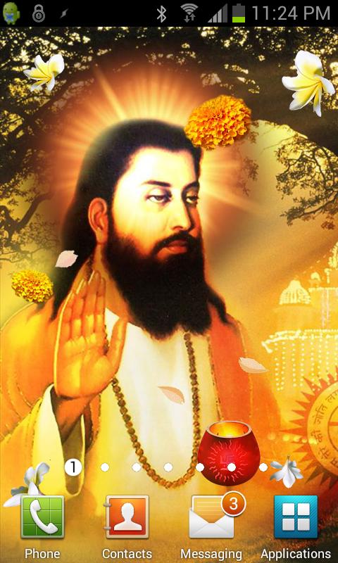 This is a beautiful high quality live wallpaper of Guru Ravidas. It features Guru Ravidas with shower of animated flowers, leafs and diyas.