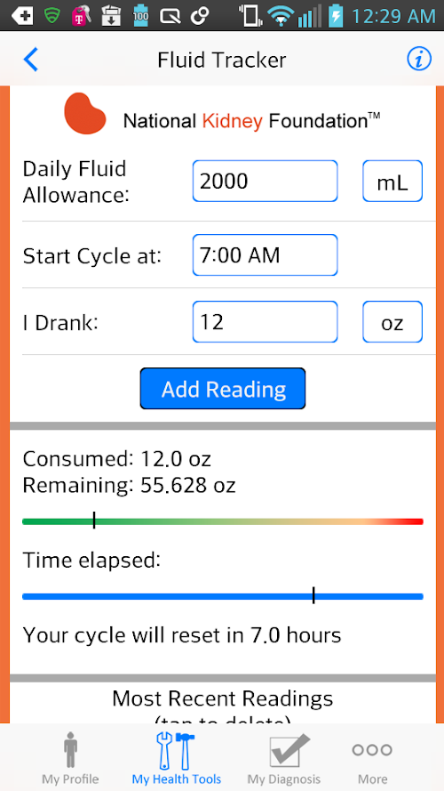 This mobile app is designed for people who need to limit their fluid intake, especially people with hyponatremia, kidney failure, or heart disease. It includes a fluid tracker, weight tracker, blood pressure tracker, nutrition tips, appointment diary, and more. It also describes the link between kidney disease, heart disease, and hyponatremia, and provides important medical information about risk factors, symptoms, treatments, when to call a doctor, and much more.