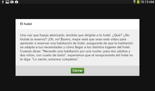 - 2 hours of practice in which you can purchase 600 useful words and phrases to use in almost all situations: all accompanied by information in Spanish.