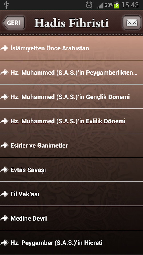 Bu uygulama, çeşitli konu ve sorular hakkında derlenmiş 7300 adet Hadise kolayca ulaşmanızı sağlamak amacı ile hazırlanmıştır. Ayrıca uygulama Peygamber efendimizin ve sahabelerin hayatlarını da detaylı olarak içermektedir.